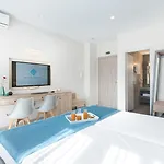 Die Zimmer im Hotel Santorini Main Square sind mit einem Bügeleisen/Bügelbrett und einer Klimaanlage sowie einer Minibar ausgestattet. Die meisten Zimmer von der Unterkunft verfügen über ein Bidet, eine getrennte Toilette und eine Dusche. Zu den weiteren Annehmlichkeiten gehören auch ein Haartrockner und Handtücher. Einige klimatisierte Zimmer überblicken das Meer.